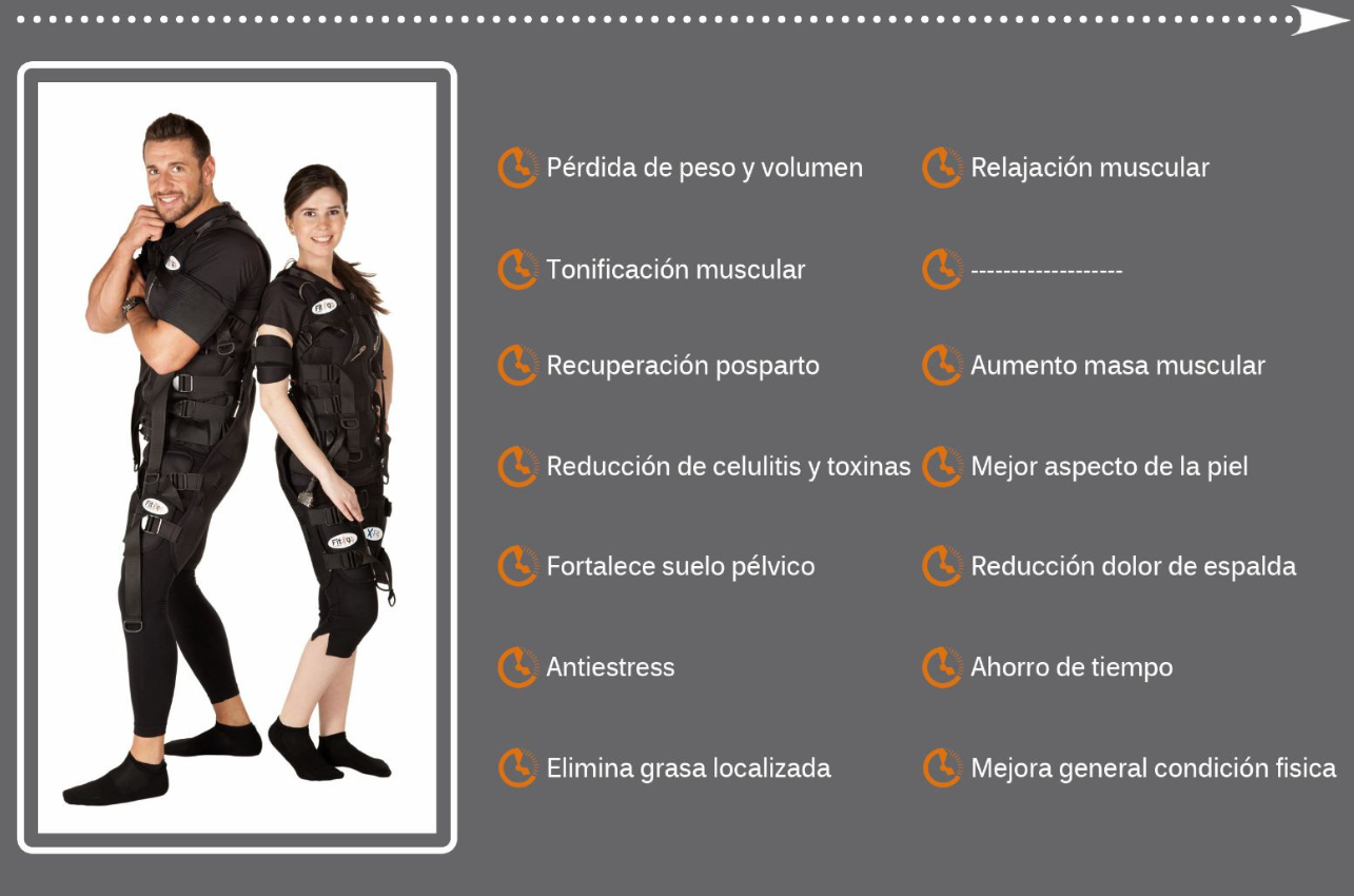 Gracias a la estimulación eléctrica, activamos más fibras musculares en cada sesión, lo que se traduce en una mayor tonificación, pérdida de grasa y mejora de la fuerza en menos tiempo comparado con el entrenamiento convencional.
